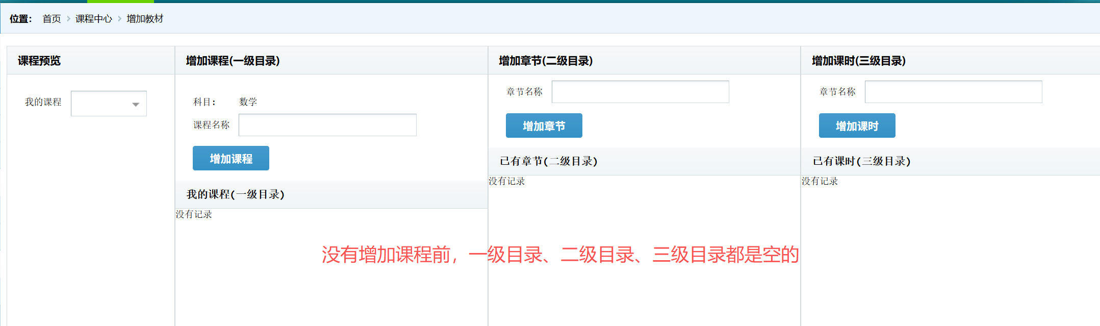 2、课程分为三级目录管理与设置: