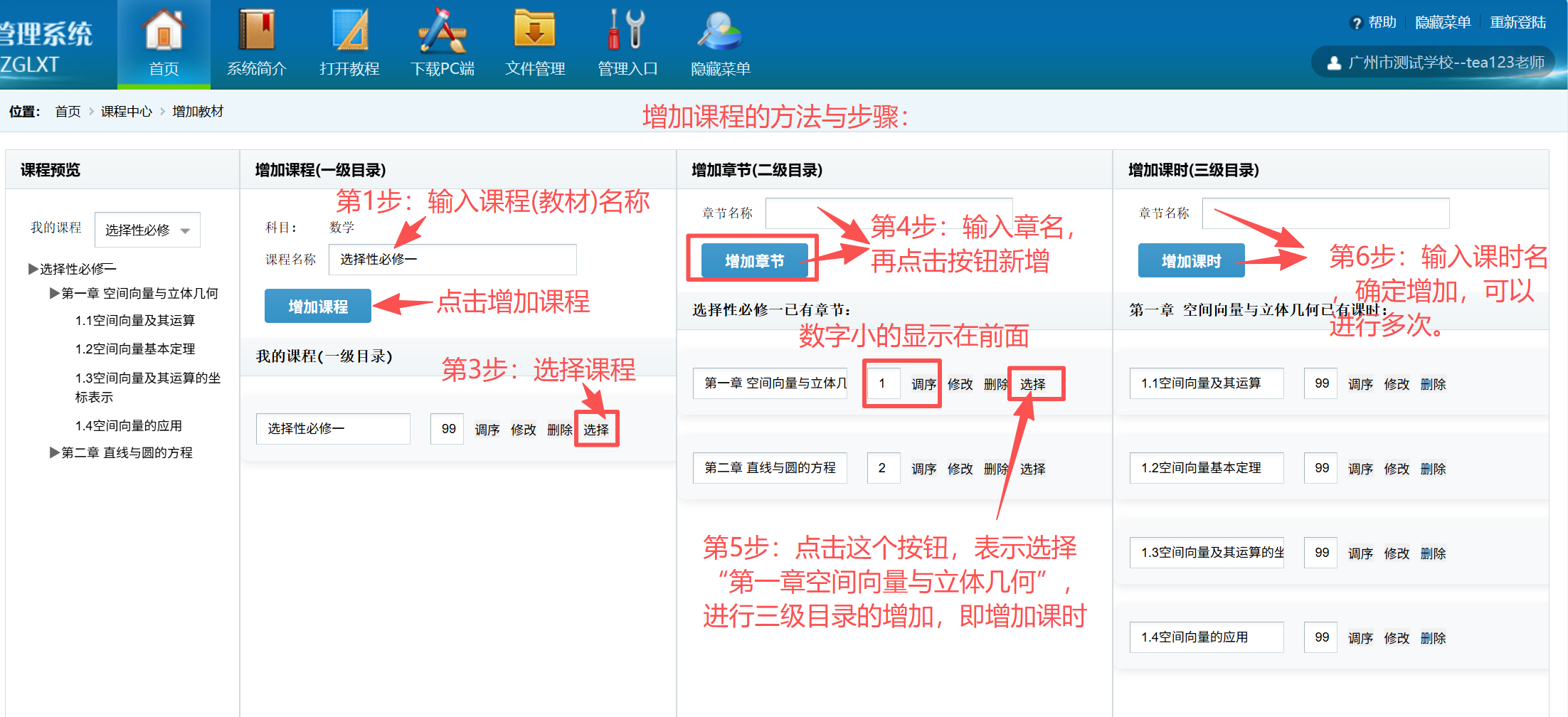 3、课程新增的步骤: