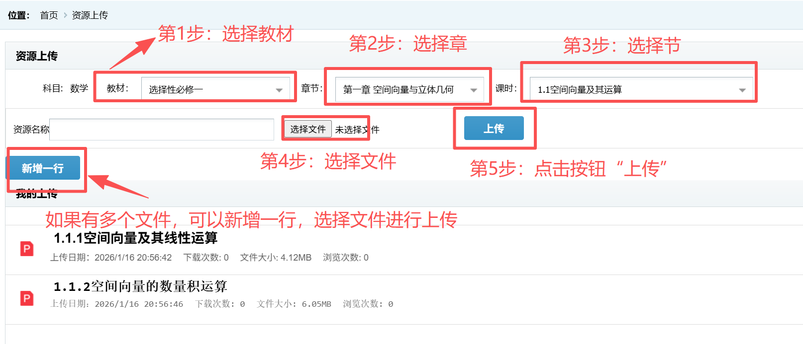 三、如何新增课程资源--“课程上传”